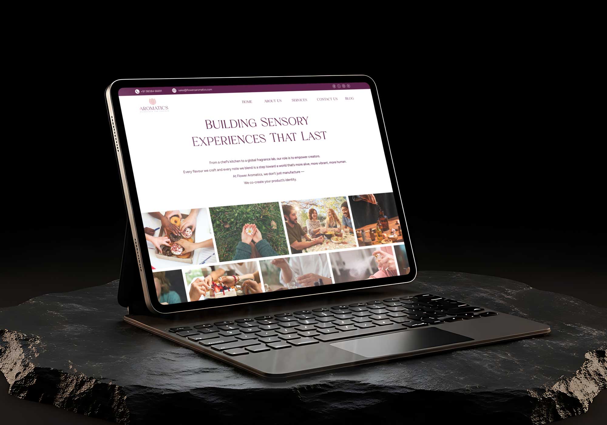 The Flowers Aromatics case study demonstrates how strategic branding and website development helped establish a strong and professional brand presence. The final identity and digital platform present the company as a reliable partner for flavors and fragrances while enhancing credibility and visibility within the competitive FMCG and food ingredient market.