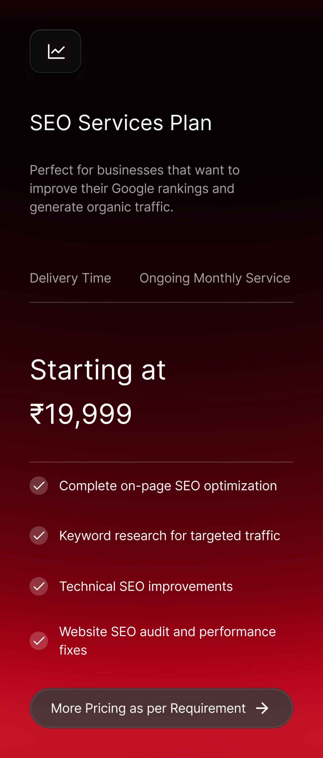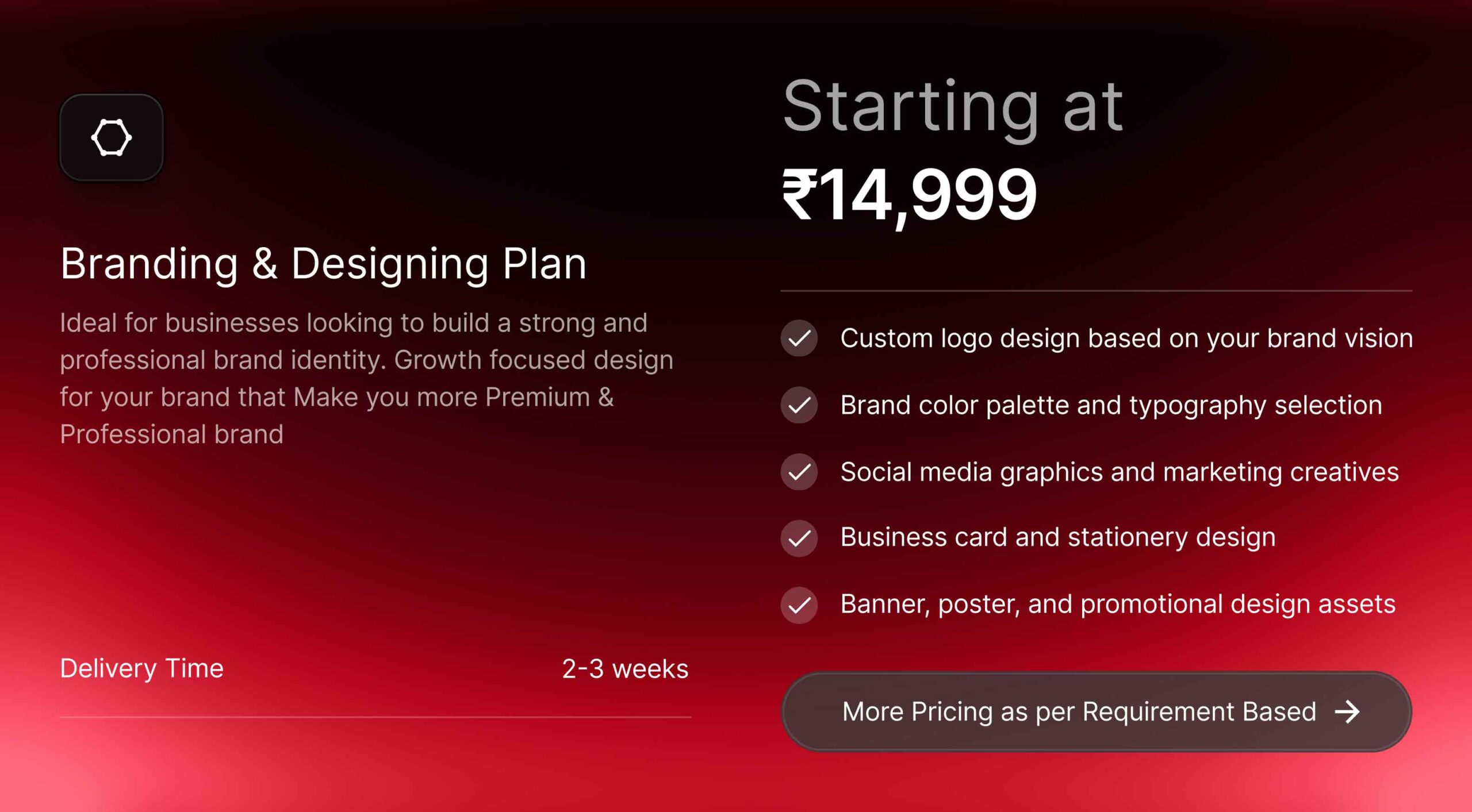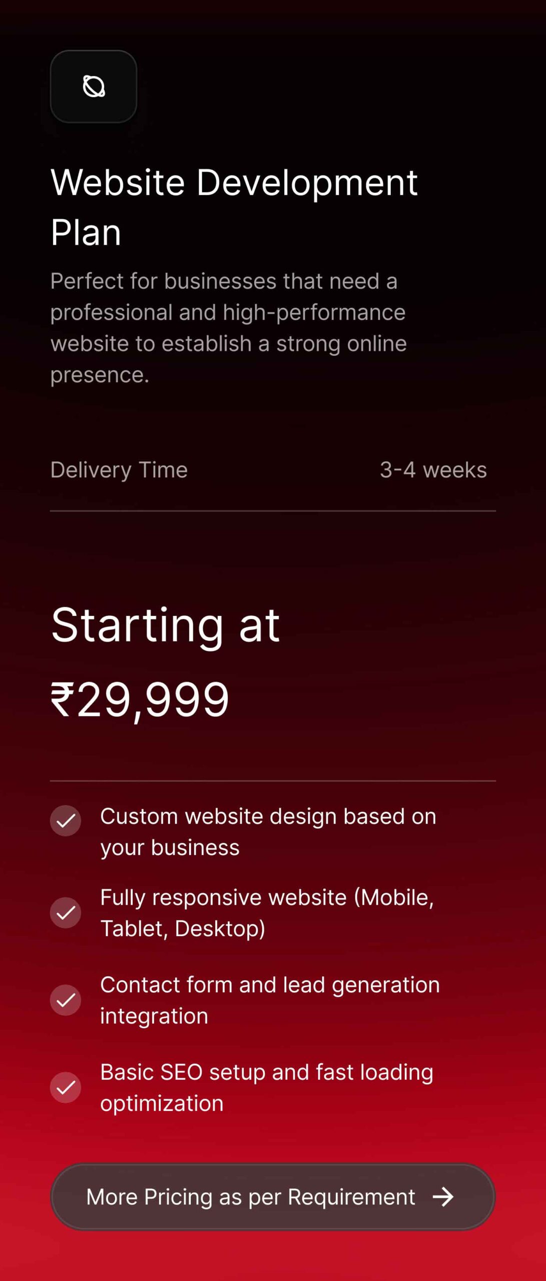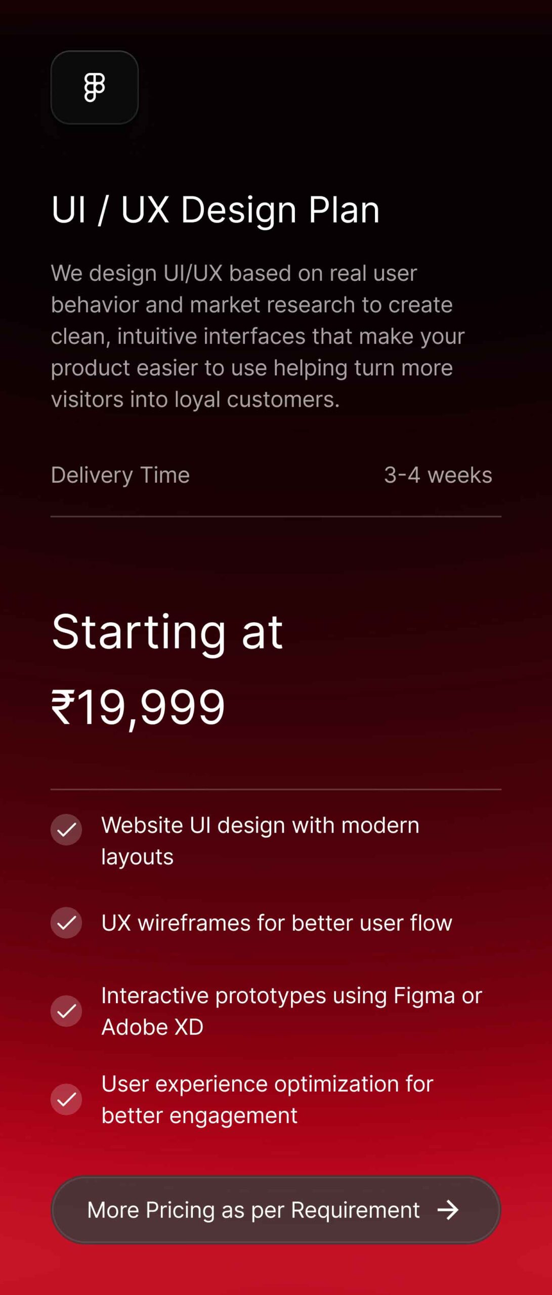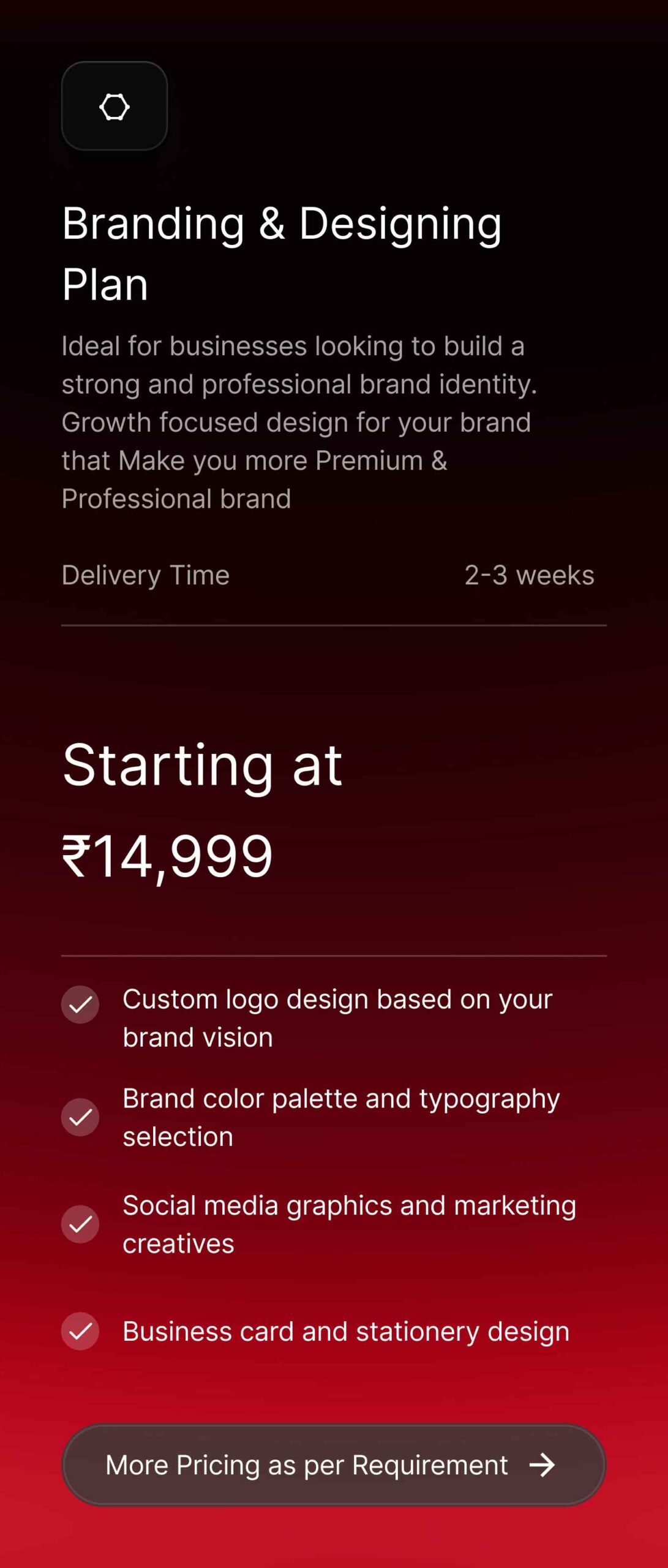 Explore our flexible pricing plans designed to suit businesses of all sizes. Whether you need a professional website, branding design, UI/UX services, or SEO solutions, our pricing is clear, affordable, and tailored to your project needs. Choose the right plan and scale your digital presence with confidence.